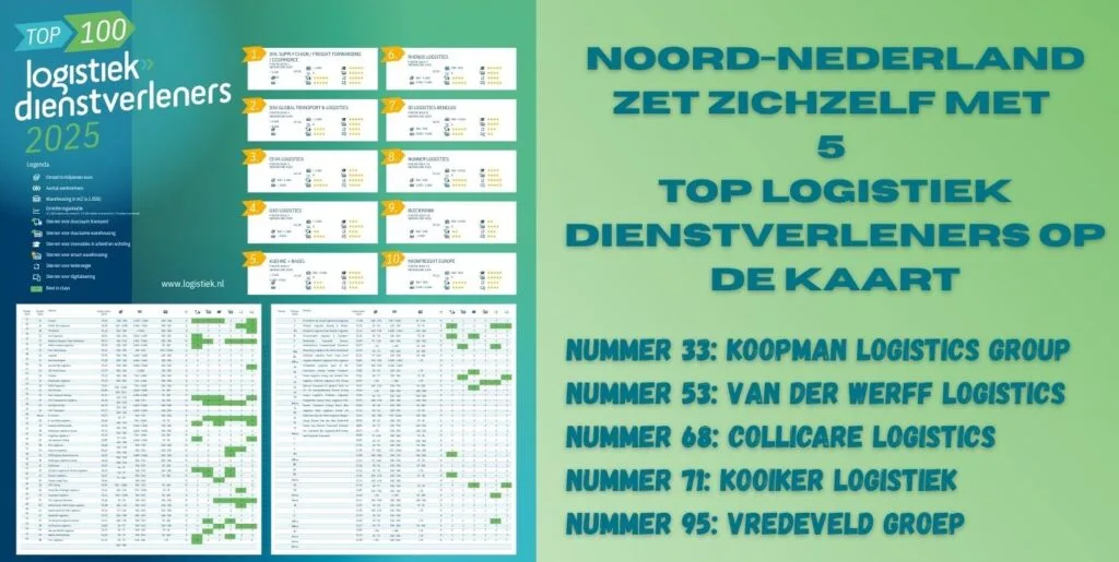 De logistieke sector in het Noorden laat zich gelden. Met vijf bedrijven in de Top 100 — waarvan vier stijgers en één debutant blijkt dat duurzaamheid, innovatie en ondernemerschap hand in hand gaan. Een veelbelovend perpectief!